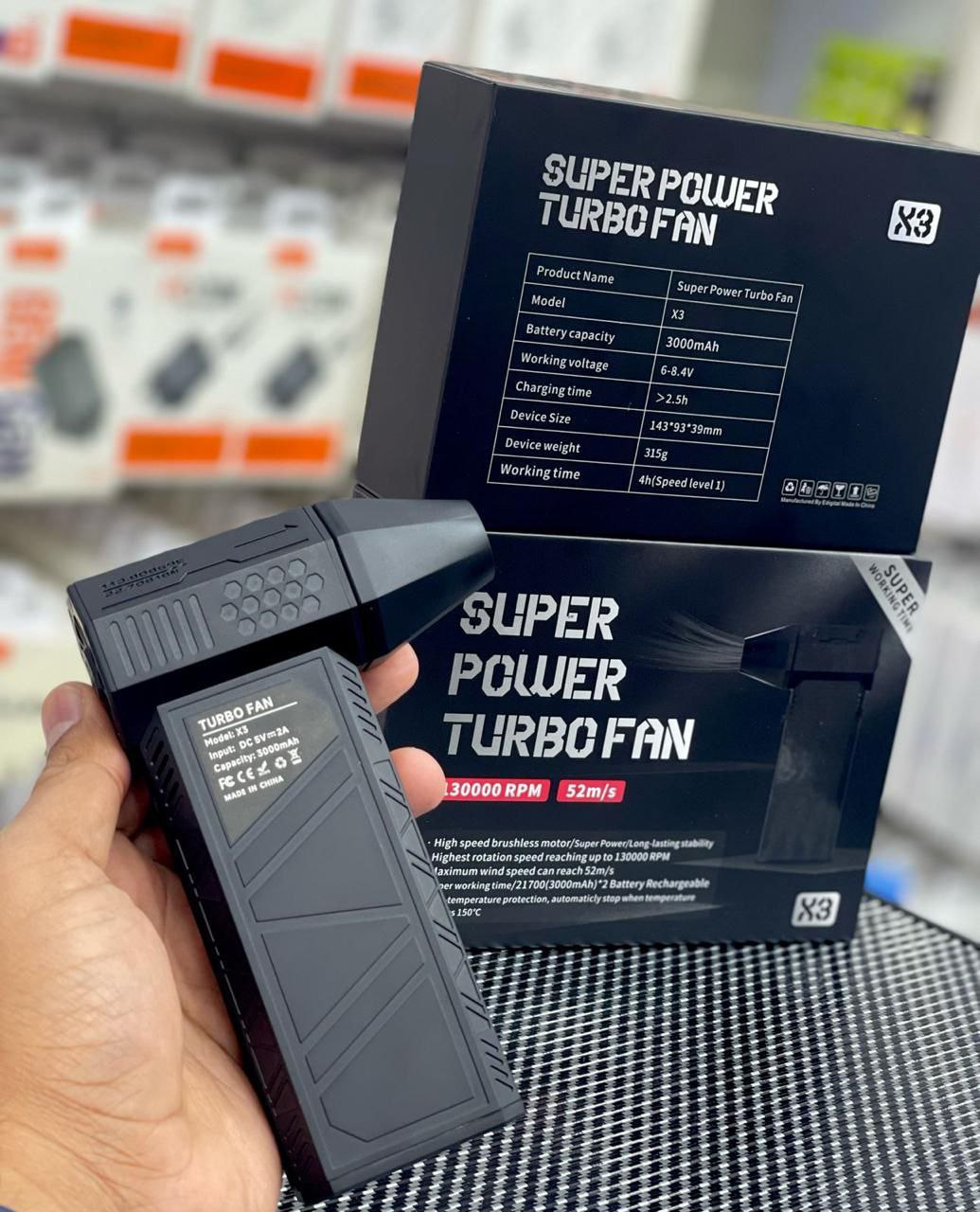 فن توربو X3 ارتقا یافته، با موتور DC و سرعت بالای 140000 دور در دقیقه، قدرت باد بسیار قوی به میزان 52 متر بر ثانیه (معادل طوفان سطح 16) تولید میکند. این فن با قدرت بالا و ثبات طولانی مدت، تحت استفاده طولانی مدت داغ نمیشود و دارای عملکرد حفاظت از شارژ و جلوگیری از داغ شدن است. باتری با دوام فوقالعاده، تا 4 ساعت در یک حالت استفاده میشود و با دو باتری داخلی 217000 و ظرفیت 3000 میلیآمپر ساعت، برای استفاده مداوم مناسب است. تنظیمات سرعت سهگانه این فن تجربهای منحصر به فرد را ارائه میدهد.