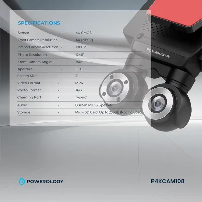 دوربین خودرو دو لنزه پاورولوژی P4KCAM108: نظارت کامل 4K، امنیت بیوقفه