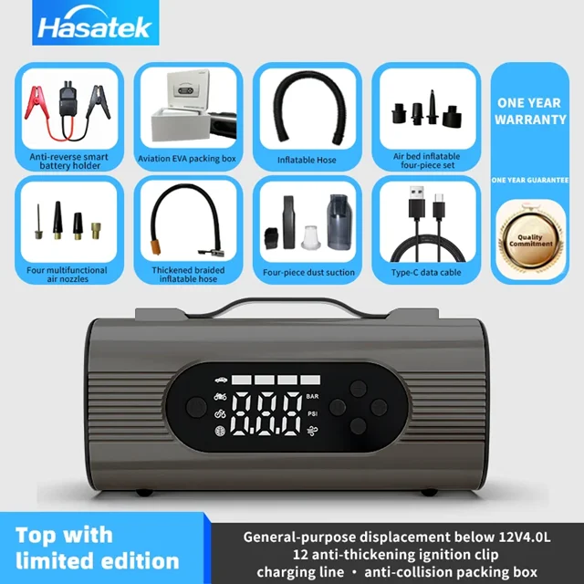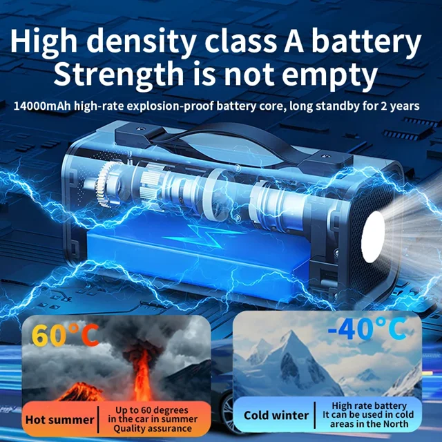 پمپ باد - جامپ استارتر- دمنده مکنده ، چراغ قوه، نجات SOS، پاور بانک-جارو شارژی-نشانگر تنظیم باد